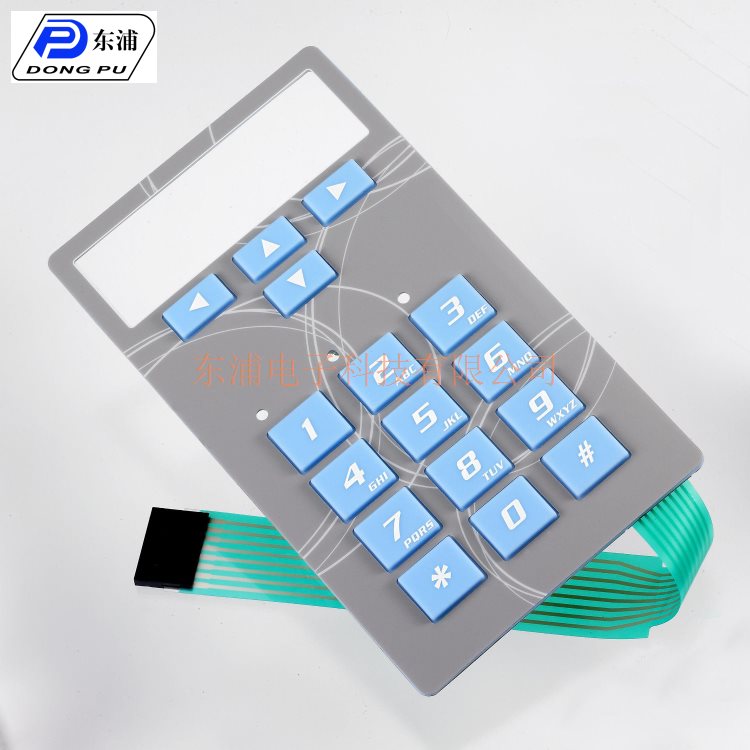 ∧ ∨ 硅膠薄膜開關 東浦電子專業生產薄膜開關是具有一定彈性的絕緣材料層組成的一種多層結構(平面)型(非制鎖)按鍵開關,集成線路。按鍵、指示元件、儀器面板等功能為一體。薄膜開關的動作只由彈性薄膜的垂直方向彈動實現,彈性薄膜雖然經過百萬次的蠕動,且蠕動時的幅度很小,僅為0.1-0.3MM,加之材料選擇的合理性,因此薄膜材料能夠承受一百萬次以上的大壽命而不變形,這些都是決定了薄膜開關的耐久性。