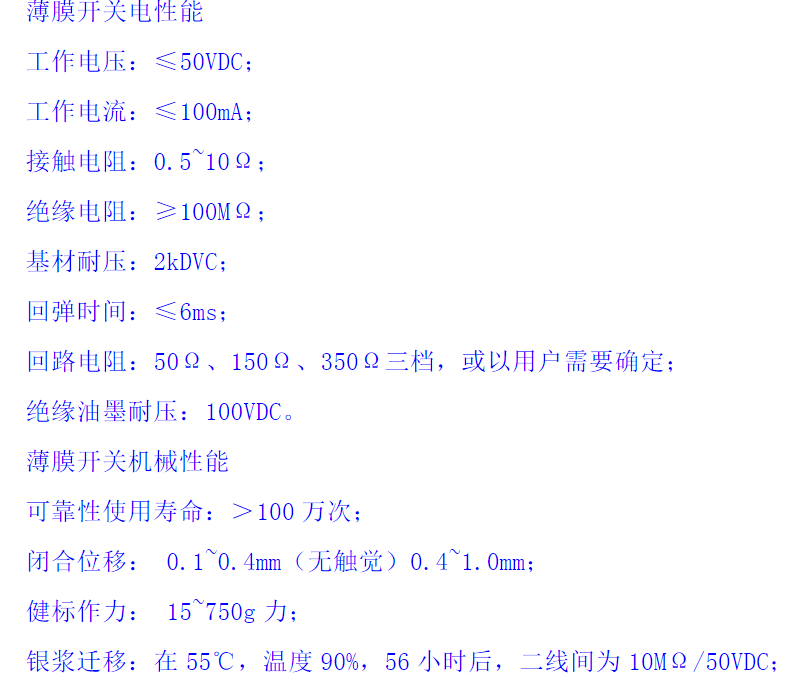 面膠最主要的作用是將面板層與電路層緊密相連,以達到密封和連接的效果,此層一般要求厚度在0.05-0.15MM之間,具有高強的粘性和防老化性;在生產(chǎn)中,一般選用專用的薄膜開關(guān)雙面膠,有些薄膜開關(guān)要求能防水防高溫,因此面膠也必須根據(jù)需要而使用不同性質(zhì)的材料。