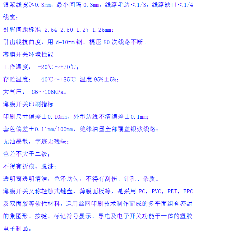 此層均采用性能良好的聚酯薄膜(PET)作為開關(guān)電路圖形的載體并在其上用特殊的工藝絲印上導電銀漿和導電碳漿,使其具有導電性能,其厚度一般在0.05--0.175MM以內(nèi),最常見的是用0.125MM PET。